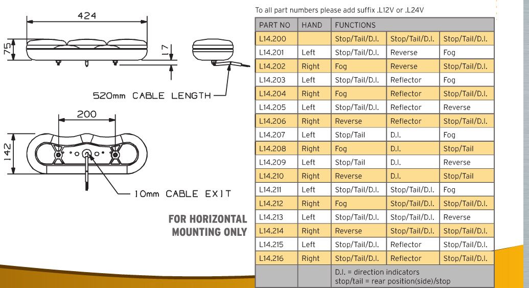 Britax L14.200.12v LED Stop/Tail/Indicator combination lamp PN: L14.200.L12v