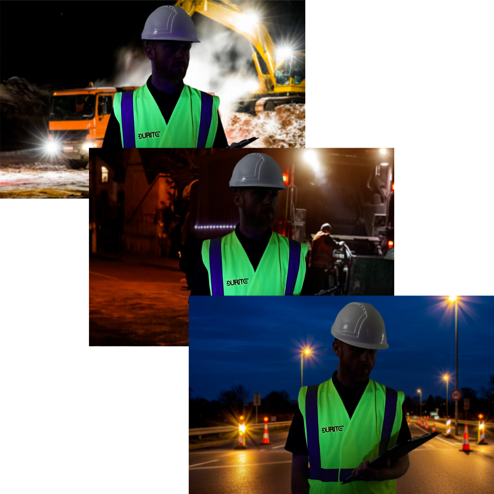 The Durite 0-422-41 LED HINVII™ Warning Light features groundbreaking technology that significantly enhances worksite safety by actively illuminating high visibility clothing and safety materials including cones and signage, improving worker visibility in high traffic areas, low light conditions and fog.