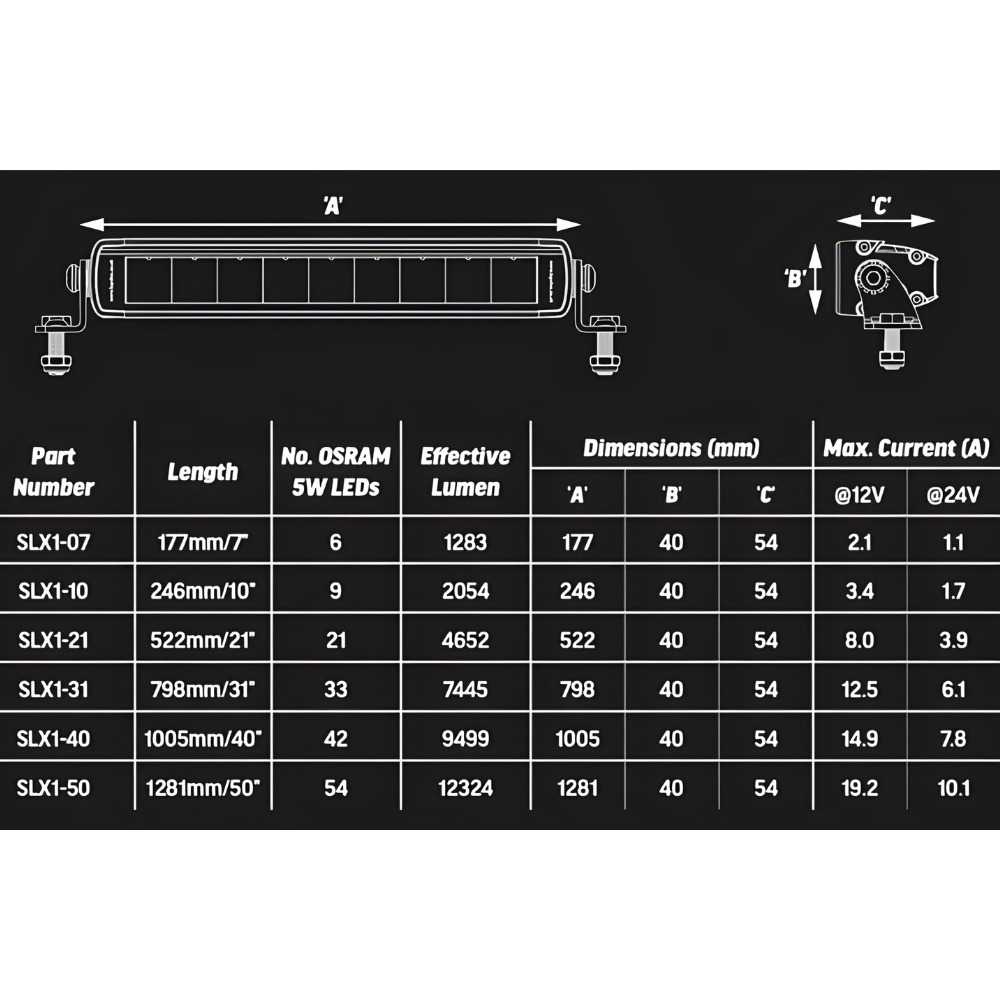 LAP Electrical SLX1-07 12/24v Single row 7" Strolux LED Work Light Bar PN: SLX1-07