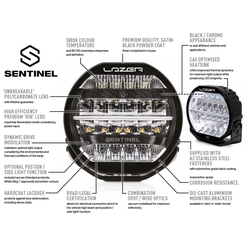 Available with: Sentinel 7’’ High Performance LED lights