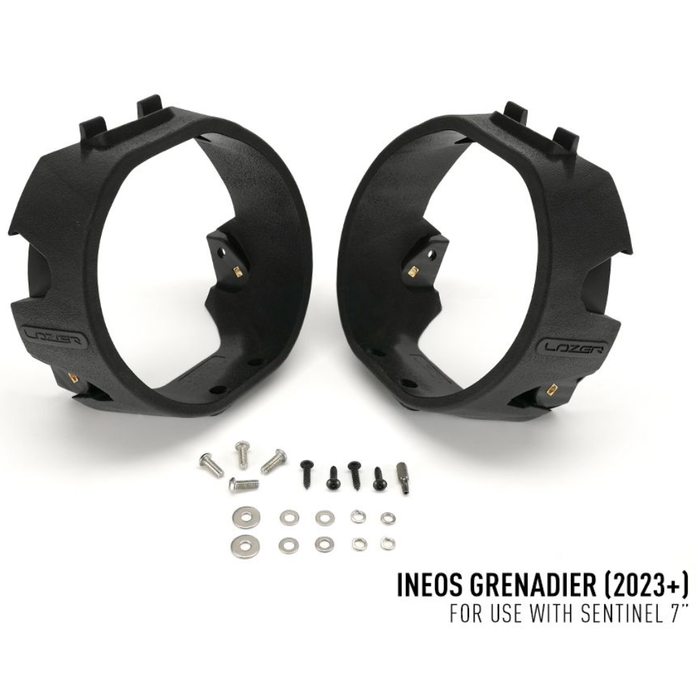 The INEOS Grenadier Grille Integration Kit is carefully engineered and optimised for use with Sentinel 7'' High Performance LED lights. Our warranty does not cover grille mounts which are fitted with non-Lazer Lamps’ branded products.