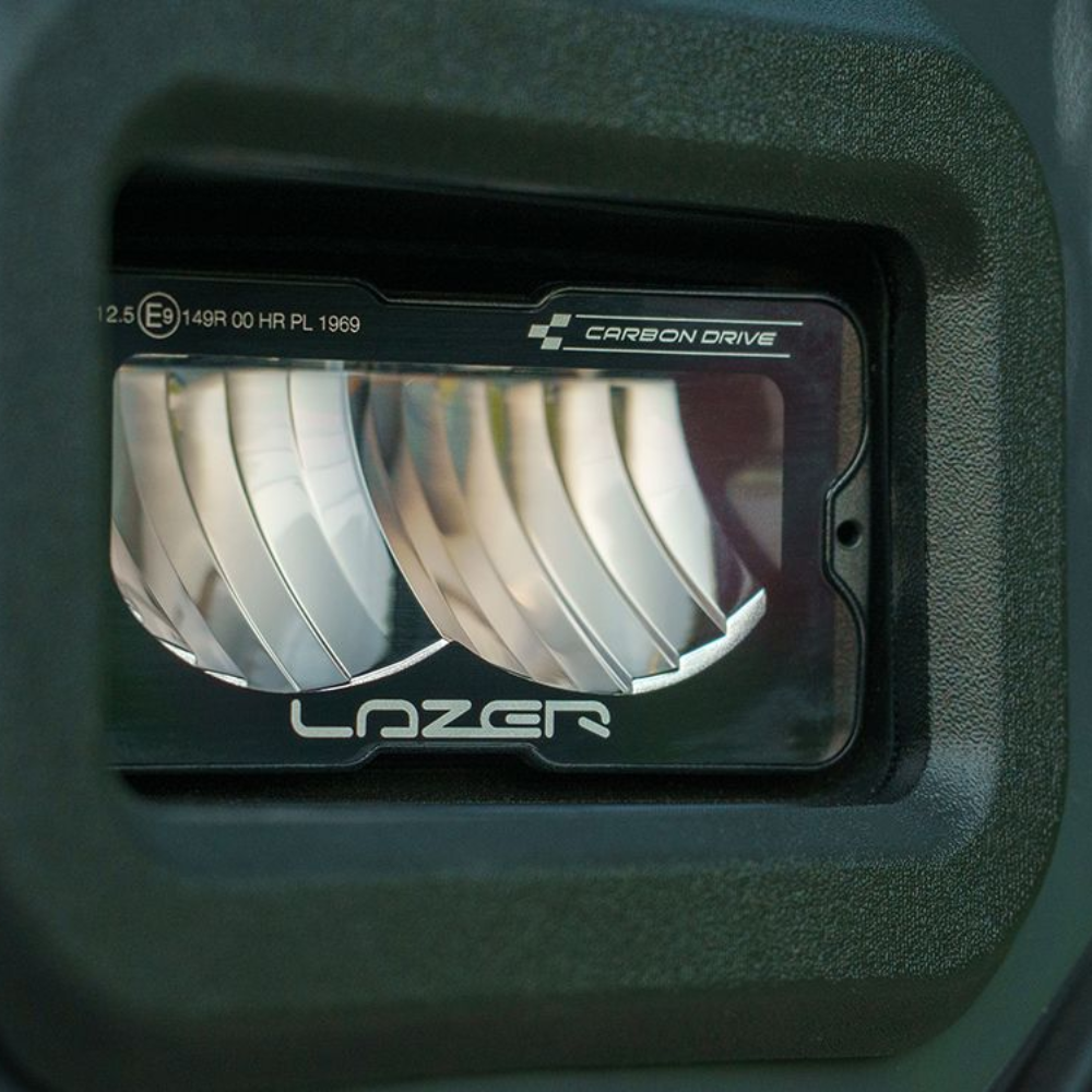 The Lazer Fog Light Upgrade Kit replaces the original OE fog lights on the vehicle. Having removed the original lights, supplied cutting templates facilitate the fit and fitment of the lamps (supplied pre-mounted within their lamp holders), and once secured in place are finished with Lazer branded bezel. Within the upgrade kit we supply a twin-lamp wiring kit, while for vehicle’s with LED headlights, it will be necessary to utilise Lazer’s market-leading CANNY solution, mindful that the dipped beam function is a non-approved function for off-road use only and in certain markets this will need to be deactivated.