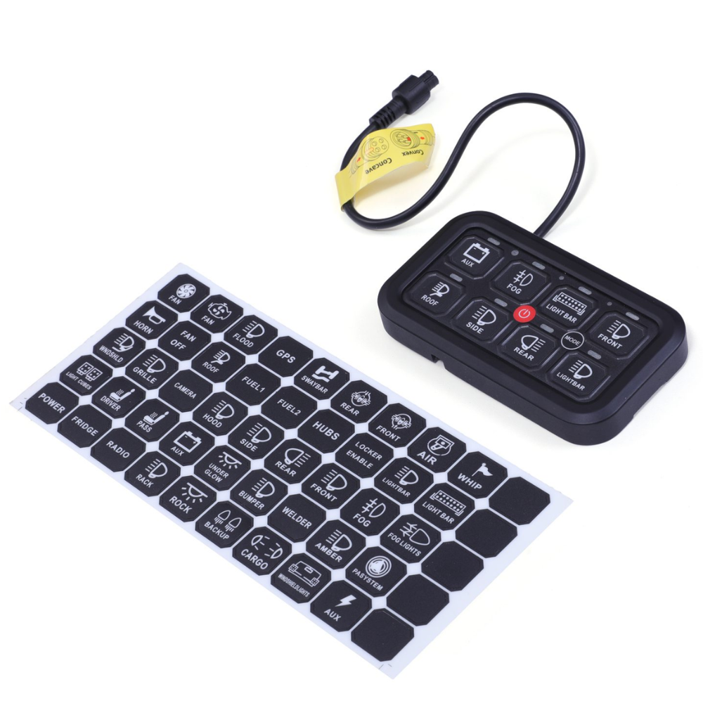 Take full control of your vehicle’s lighting setup with Stealth LED’s 8-Gang Multi-Function Control Panel, designed for seamless integration with any of our bespoke Integration Kits or LED Light Bars. This compact and durable control panel delivers reliable performance and total customisation. Includes a full sticker kit so you can clearly mark each button for specific functions, no confusion, just clean control with LED Backlighting for effortless visibility and operation after dark. Bluetooth Connectivity allows you to connect to the control panel via the companion mobile app, allowing you to operate all your Light Kits directly from your smartphone.