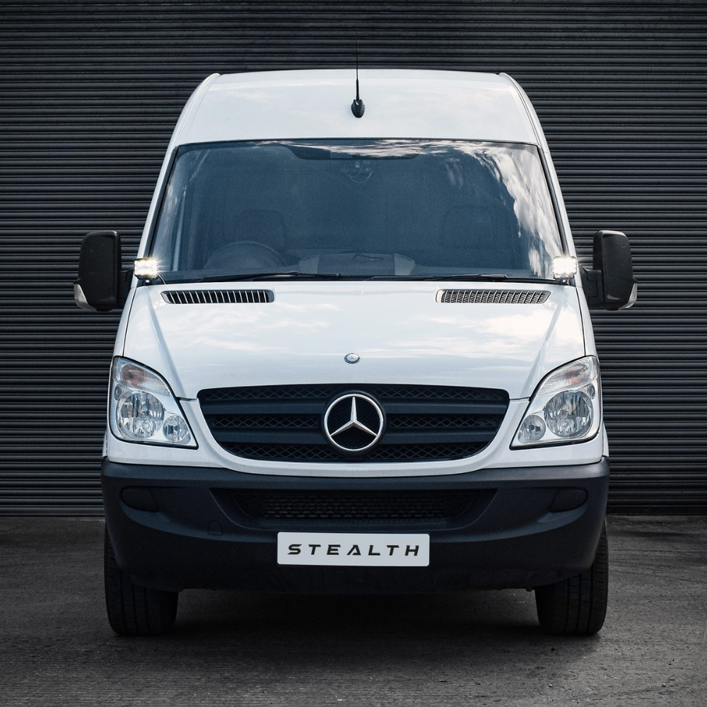 Designed using sophisticated CAD and 3D scanning software, our twin 4″ LED Bonnet light kit is ingeniously engineered to mount to the vehicles existing bonnet brackets and does not require any cutting or drilling. The kit includes a step by step installation guide. Stealth’s 4″ Dark Force Bonnet Kit for the Mercedes Sprinter offers a perfect blend of functionality and aesthetic appeal, perfect for both commercial and personal use. Improving visibility and safety for work sites and night time driving.