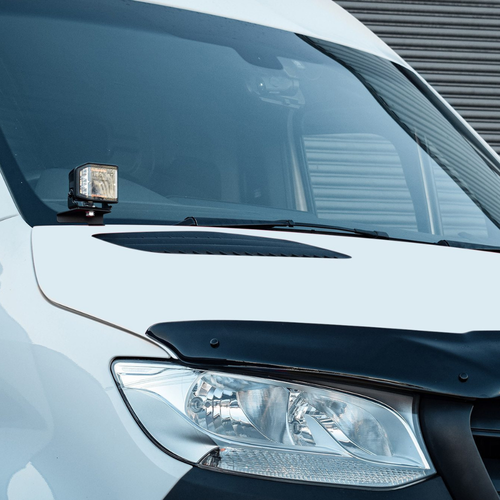 Designed using sophisticated CAD and 3D scanning software, our twin 4″ LED Bonnet light kit is ingeniously engineered to mount to the vehicles existing bonnet brackets and does not require any cutting or drilling. The kit includes a step by step installation guide. Stealth’s 4″ Dark Force Bonnet Kit for the Mercedes Sprinter offers a perfect blend of functionality and aesthetic appeal, perfect for both commercial and personal use. Improving visibility and safety for work sites and night time driving.
