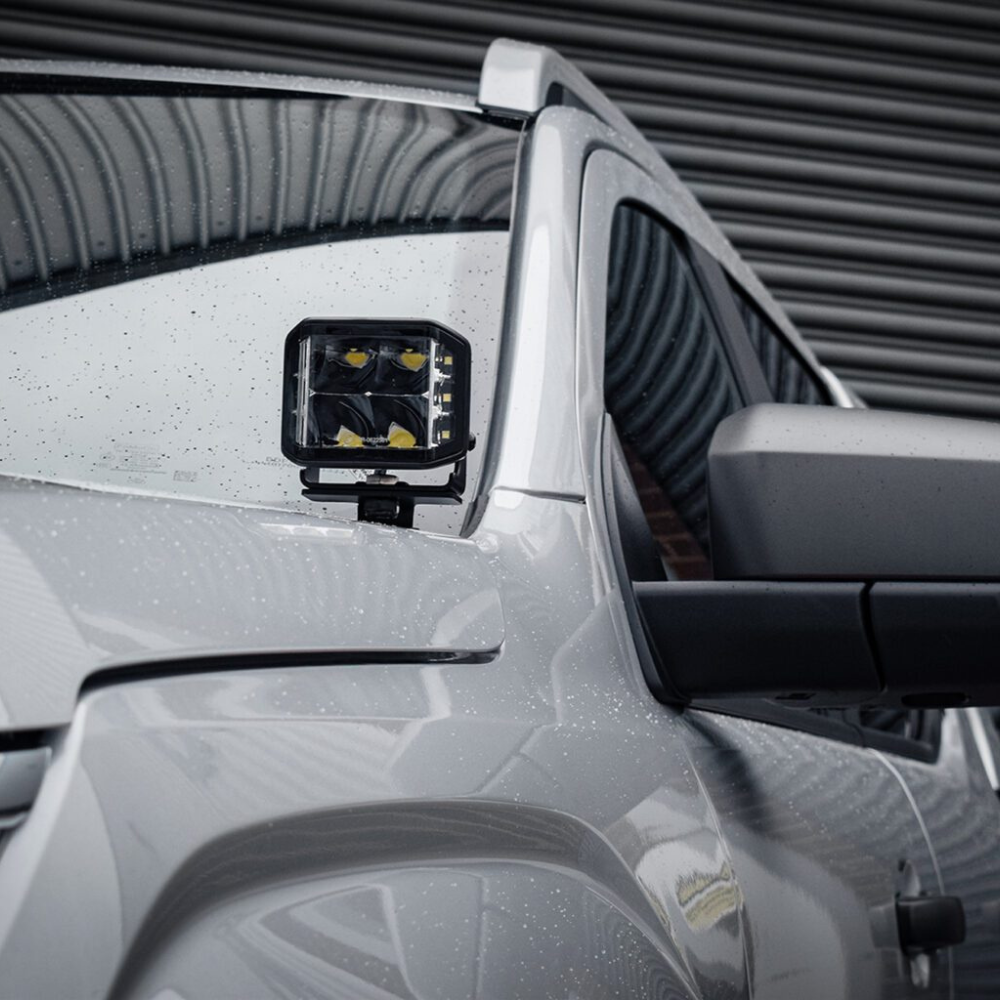 Designed using sophisticated CAD and 3D scanning software, our twin 4″ LED Bonnet light kit is ingeniously engineered to mount to the vehicles existing bonnet brackets and does not require any cutting or drilling. The kit includes a step by step installation guide. Stealth’s 4″ Dark Force Bonnet Kit for the VW Amarok offers a perfect blend of functionality and aesthetic appeal, perfect for both commercial and personal use. Improving visibility and safety for work sites and night time driving.