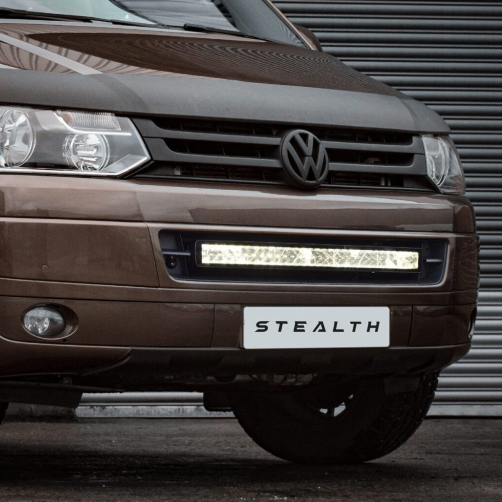 Designed using sophisticated CAD and 3D scanning software and fabricated in-house, The Stealth 30″ LED light Kit is ingeniously engineered to mount in the grille using bespoke mounting brackets and includes a step-by-step installation guide. Stealth’s 30″ Integration Kit for the VW Transporter T5.1 offers a perfect blend of functionality and aesthetic appeal, a great option for those looking for a discreet yet powerful LED light Kit. Improving visibility and safety for work sites and nighttime driving.