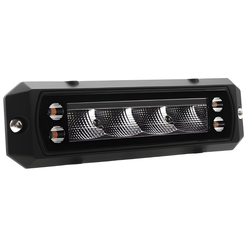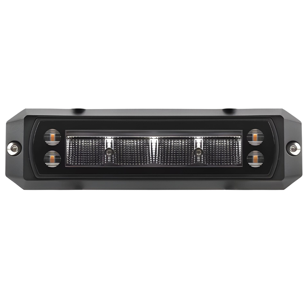 The Van Master Strobex is a versatile, approved reversing lamp that also incorporates a fully certified warning light, combining two functions in a single, streamlined unit. Designed to simplify installations and save space, it offers robust illumination to the rear of the vehicle with cold white output while also delivering amber strobe warning functionality under E-mark compliance. The Strobex supports multiple mounting orientations: upright, recessed, or hanging and is built to handle demanding environments with a 9-36 V range, IP69K protection, and side-reflective optics. With thermal management electronics and compact dimensions (164 × 41 × 61 mm), it’s engineered for reliability and long service life.