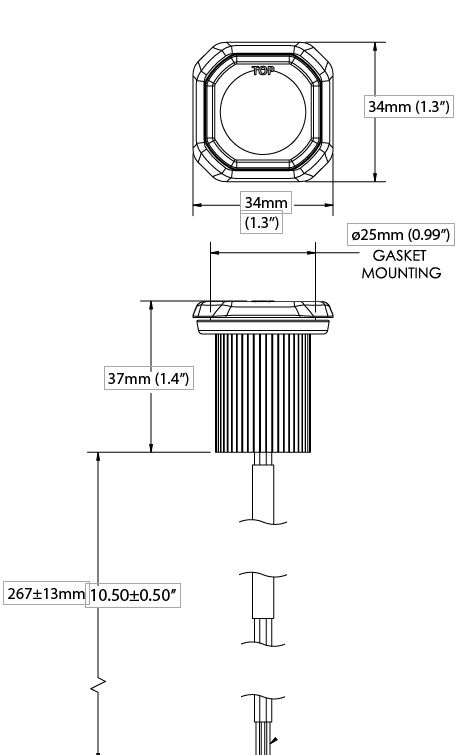 - Discreet flush mount, virtually applicable on any vehicle surface - insertable in a 1” hole, with 10” pigtail cable
