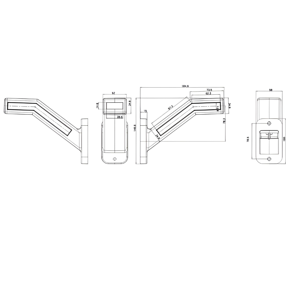 WAS W168.6DD LED 60 Degree Stalk End Outline Marker Light with side and dynamic indicater Combinational position lamp, Right Side / Fly lead / Part number 1259P